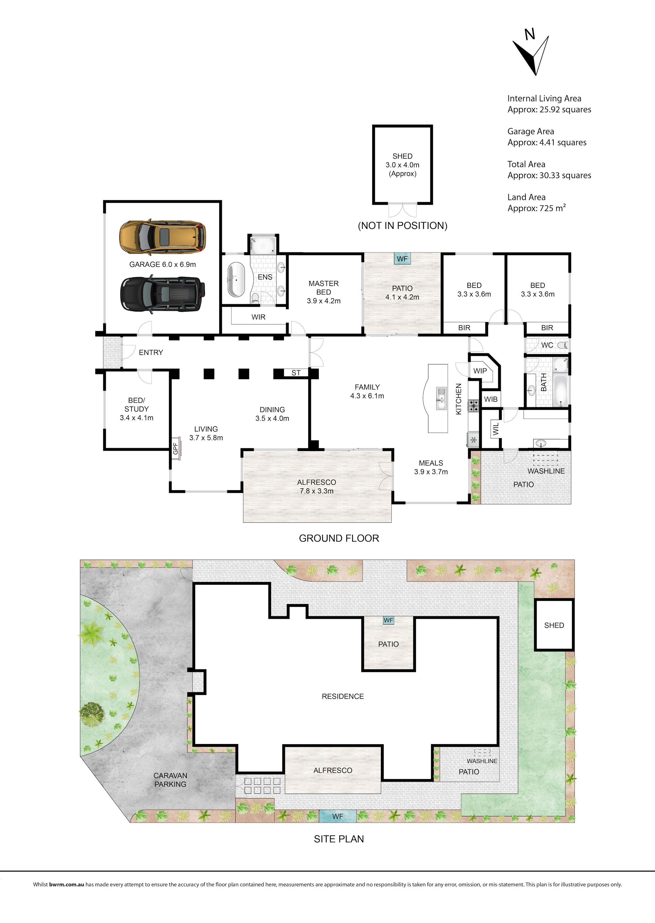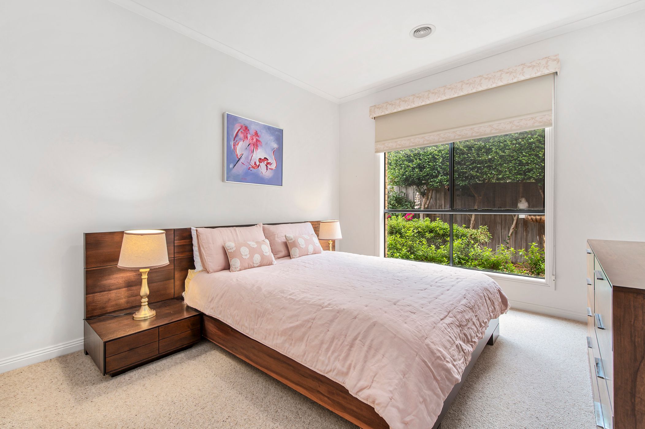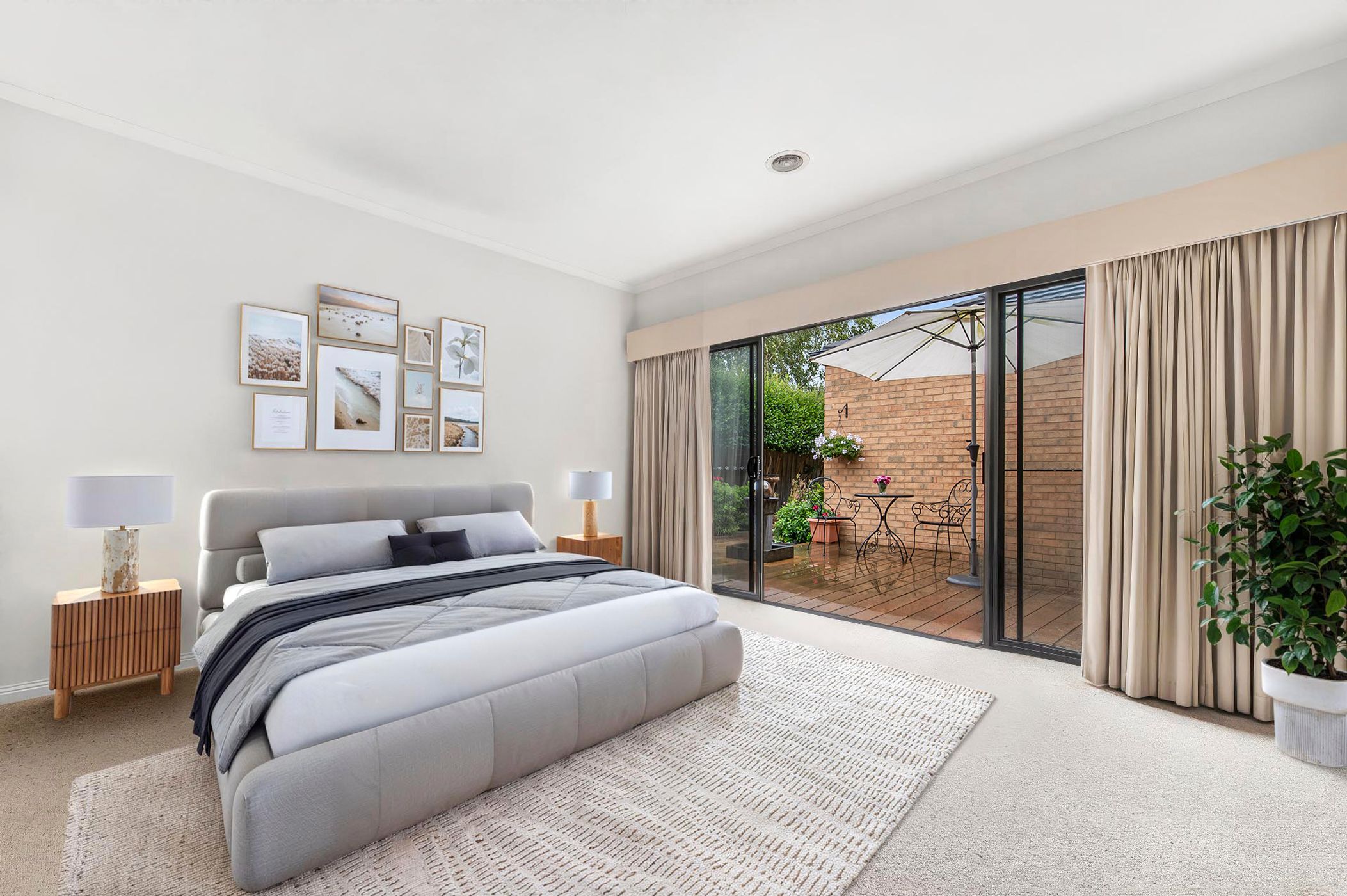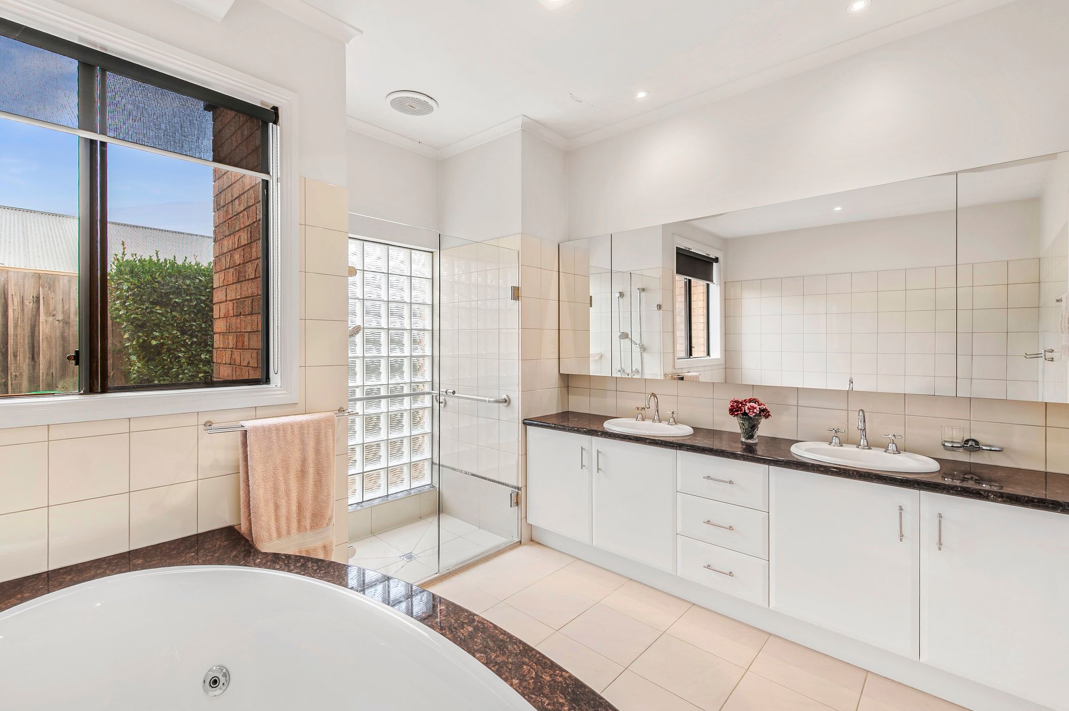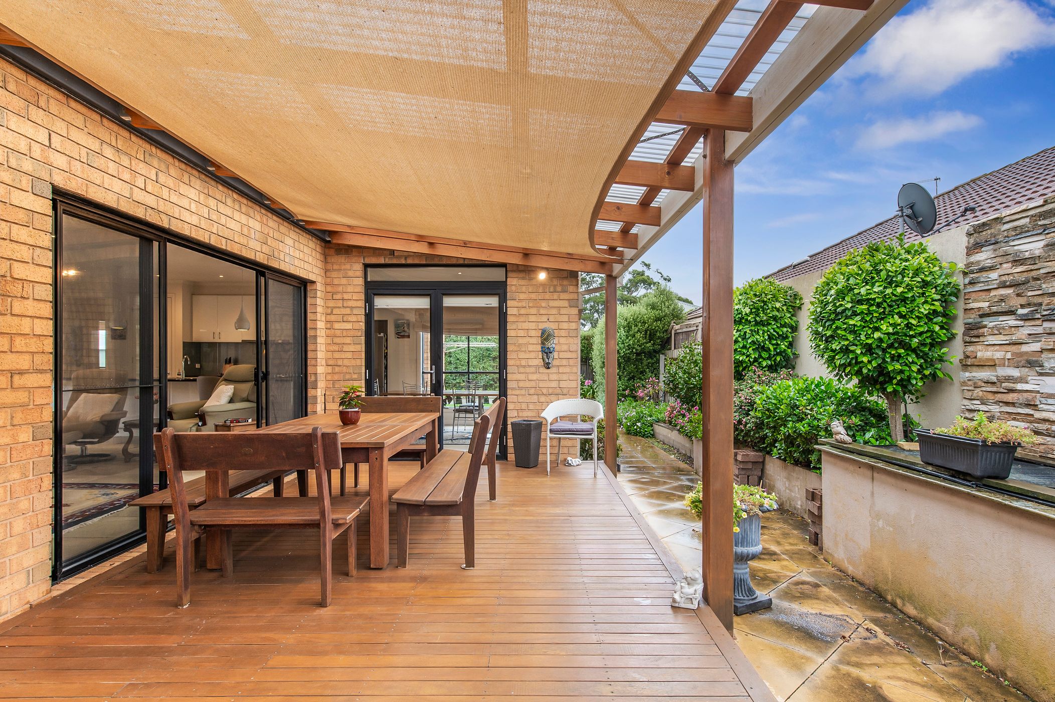 Accommodation includes four spacious bedrooms, with the master suite offering a walk-in robe, large ensuite with spa bath and private doors opening onto a deck — the perfect spot to enjoy the surrounding garden. The remaining bedrooms are serviced by a generous central bathroom complete with a separate bath, while curtains and blinds throughout add comfort and privacy.