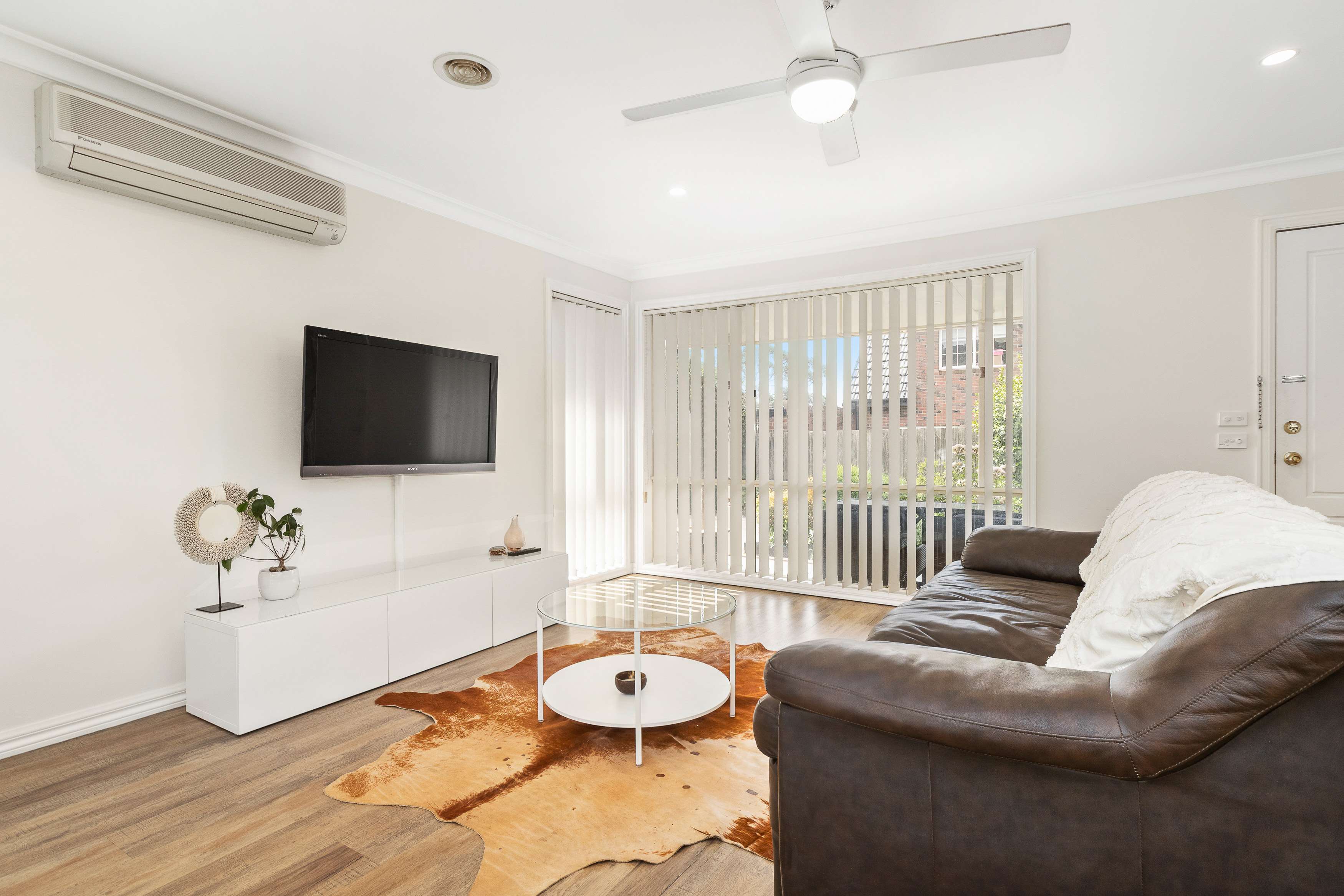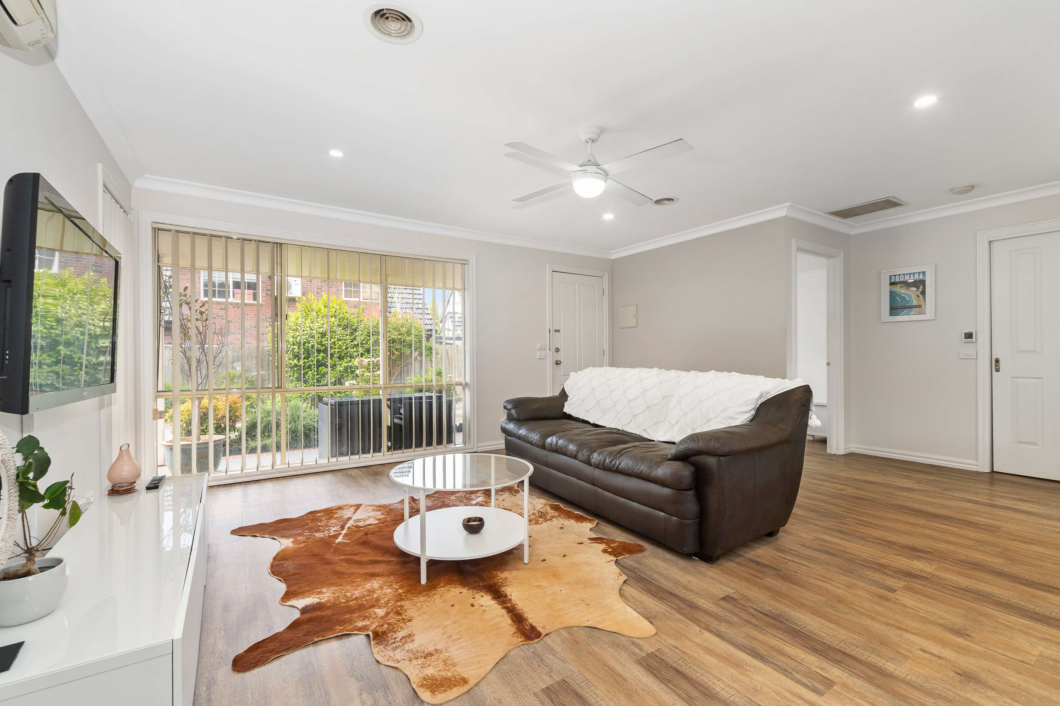 Designed for comfortable, low-maintenance living, the home features two spacious, zoned bedrooms, two bathrooms plus a powder room, and a generous open-plan living and dining zone. The light-filled kitchen adjoins the meals area and flows seamlessly to a sunny, private courtyard, perfect for relaxed entertaining.