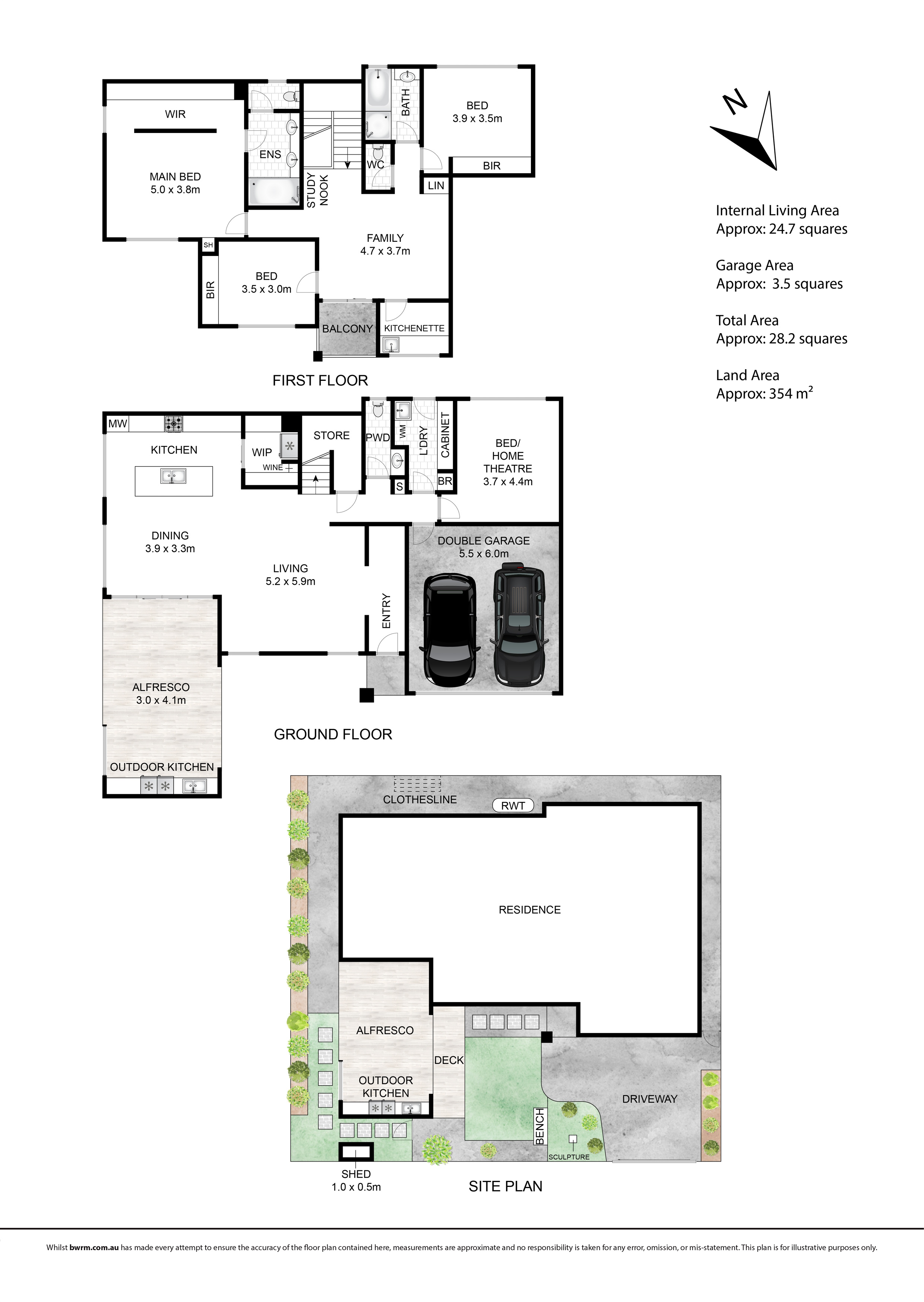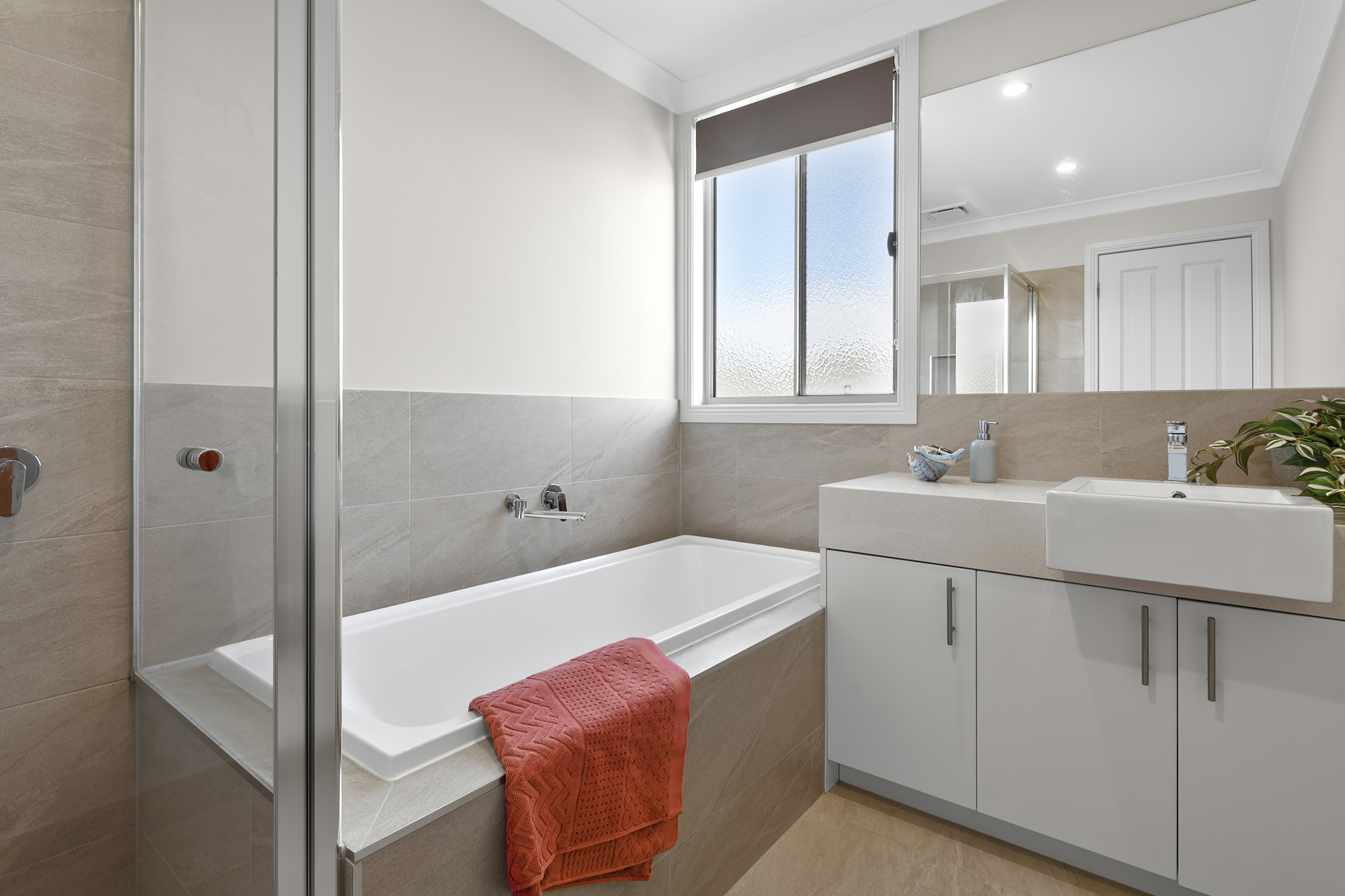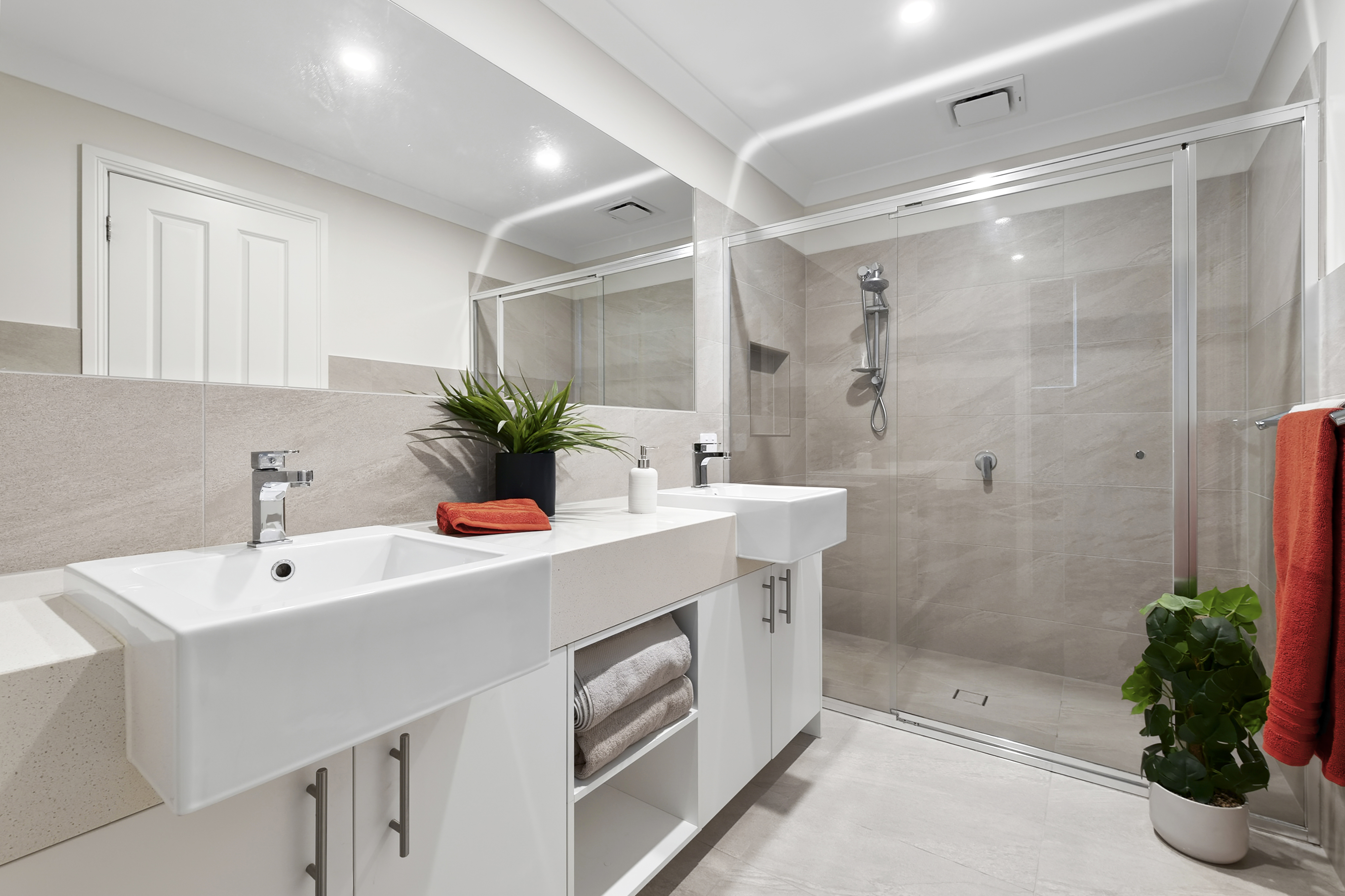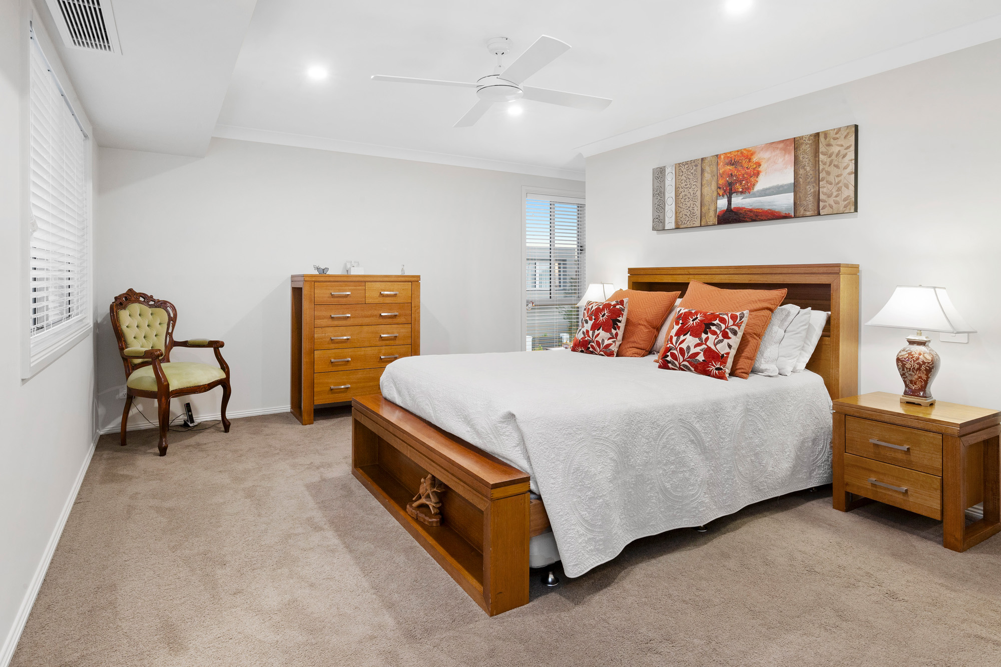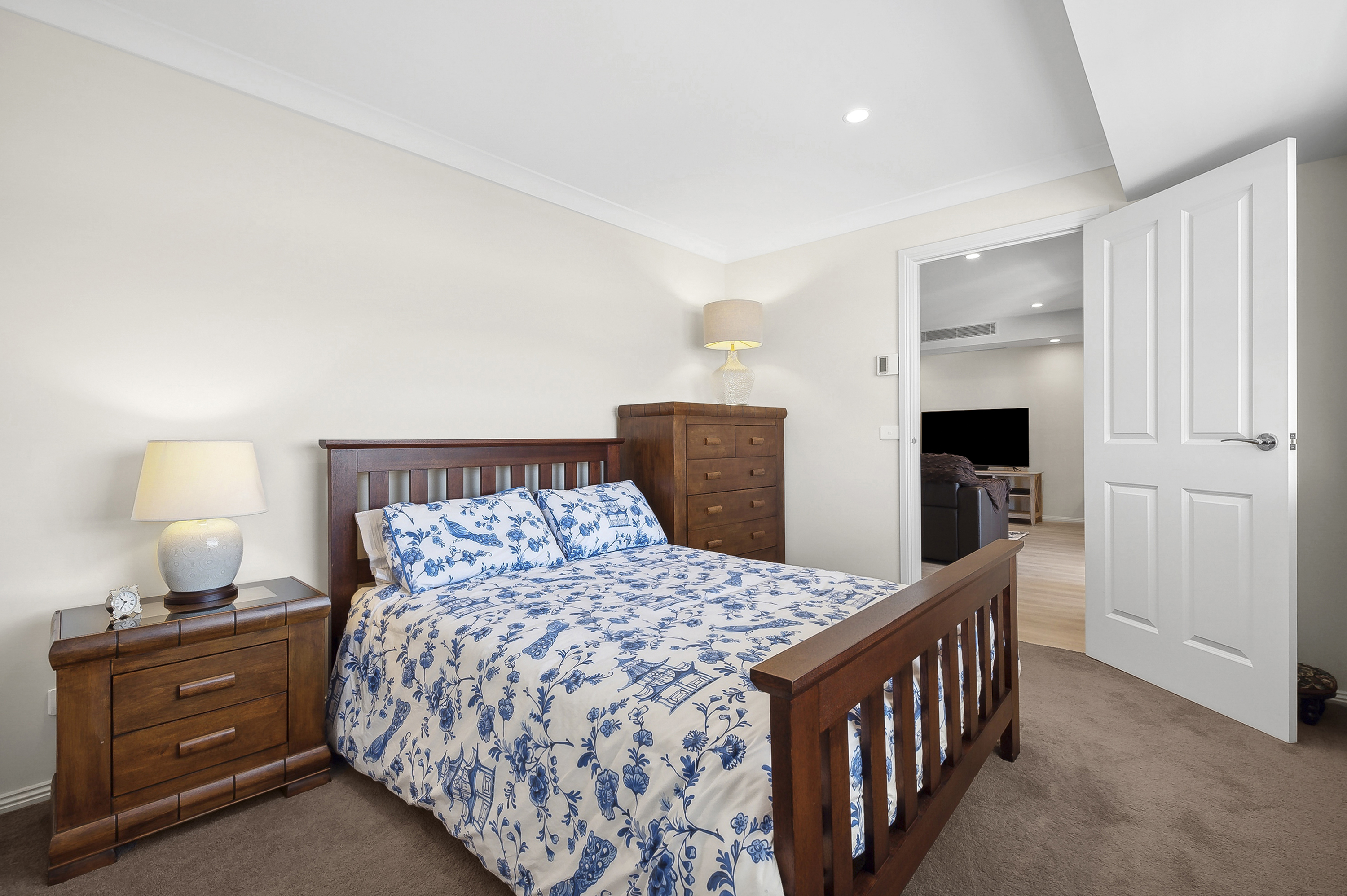 The master suite is a true sanctuary, featuring a walk-behind robe and a luxurious ensuite with twin vanities and a double shower. Two additional bedrooms and a central bathroom complete the upper level, offering space and comfort for family or guests.