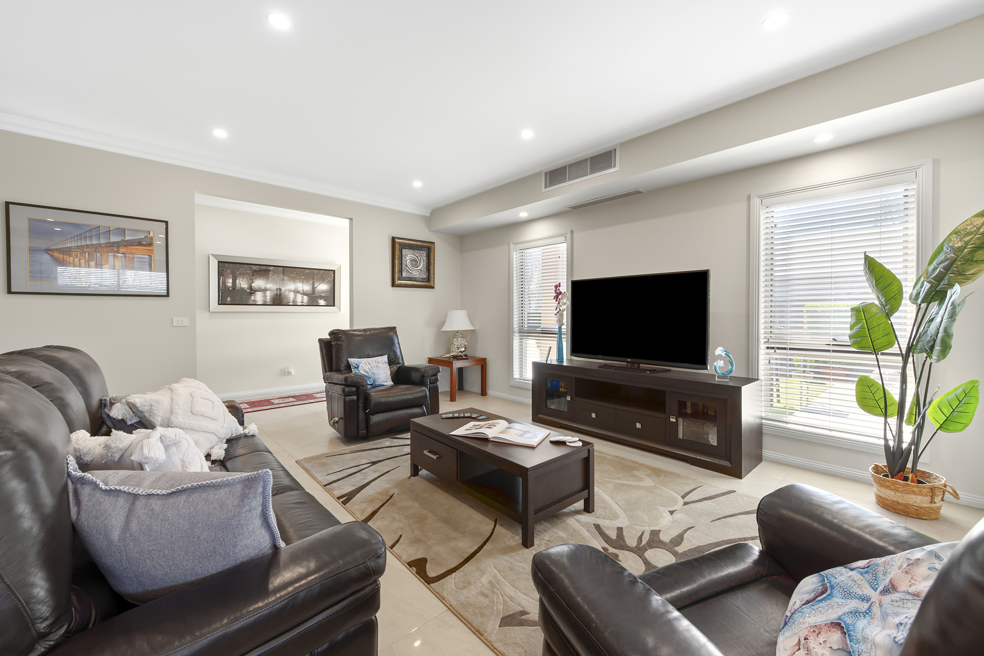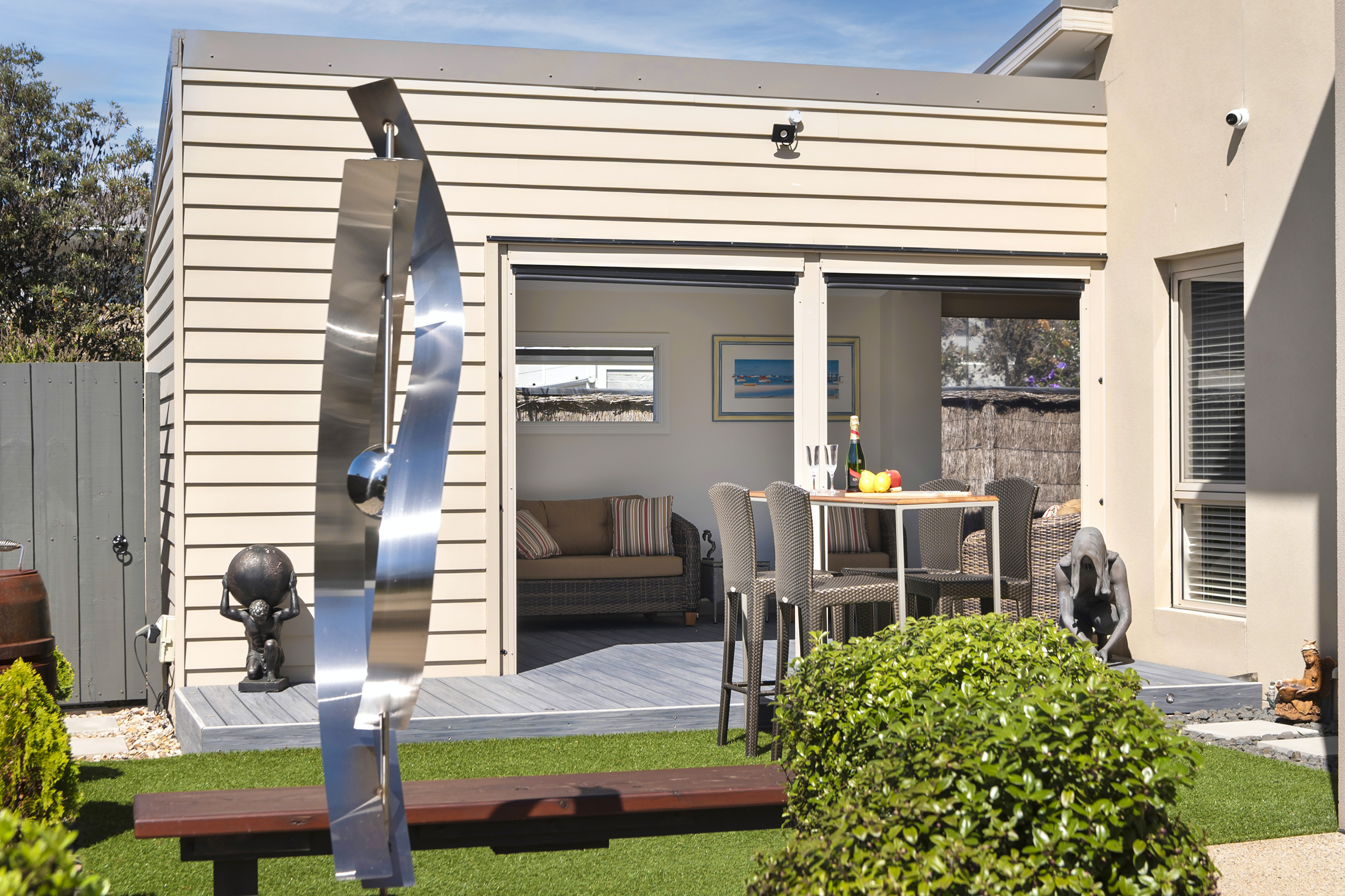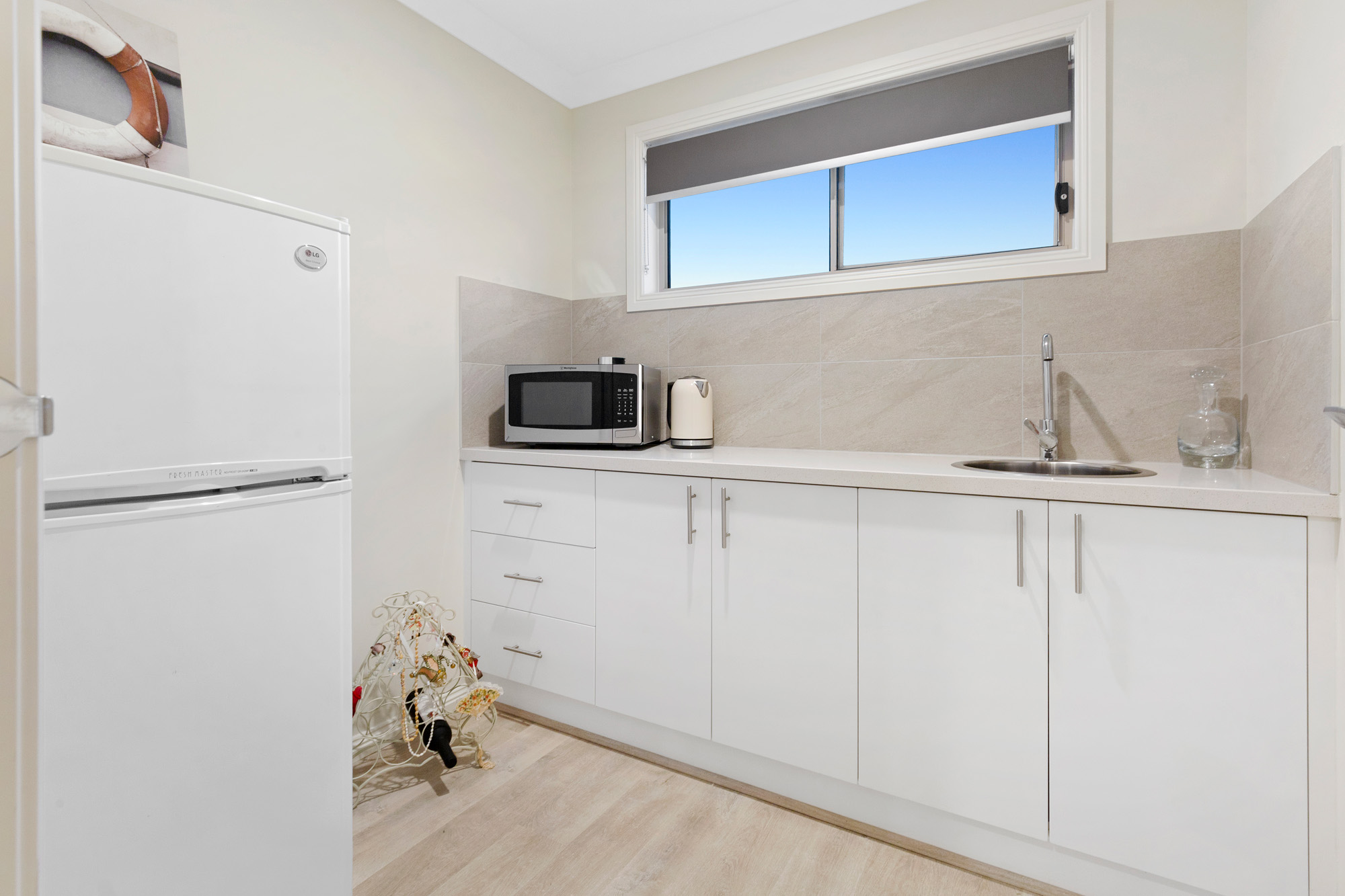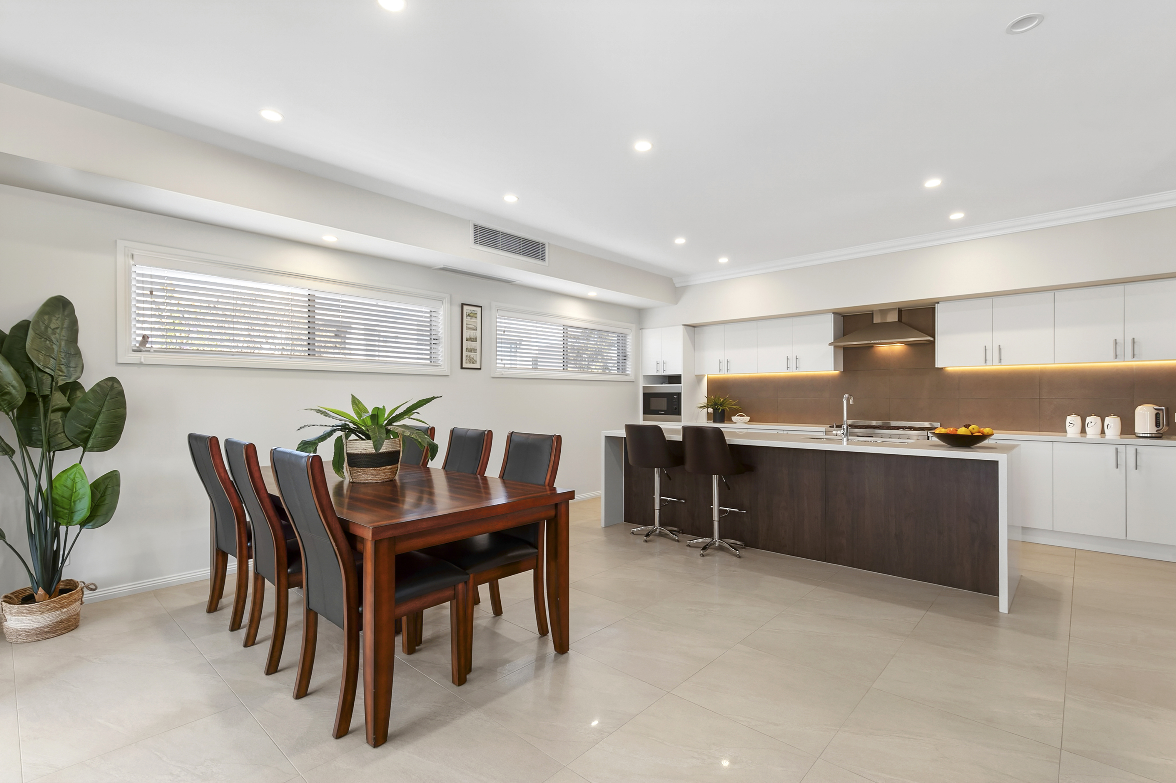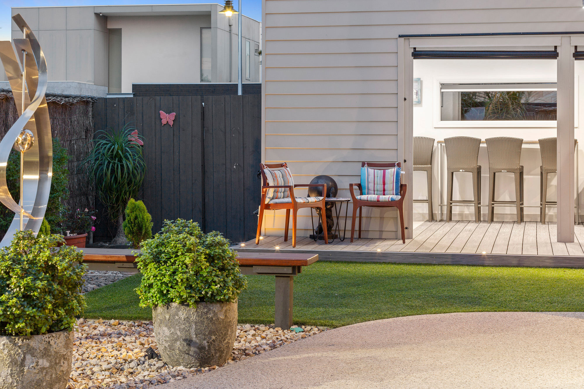The home’s contemporary design delivers both sophistication and comfort, with light-filled interiors, high ceilings, and a seamless connection between indoor and outdoor spaces. The open-plan living and dining area extends to a beautifully appointed alfresco zone, complete with kitchenette, café blinds, and composite decking, perfect for relaxed entertaining in every season.