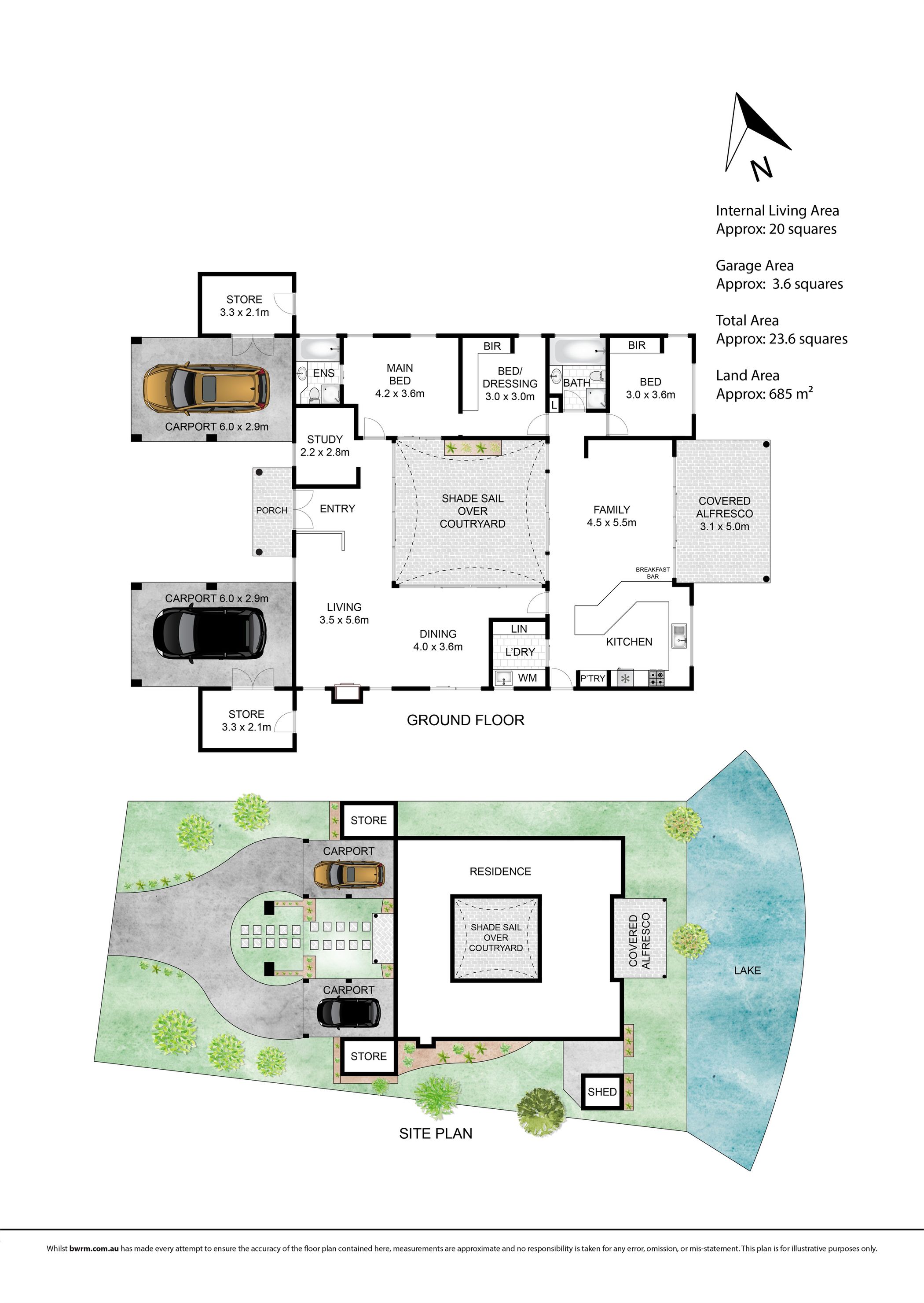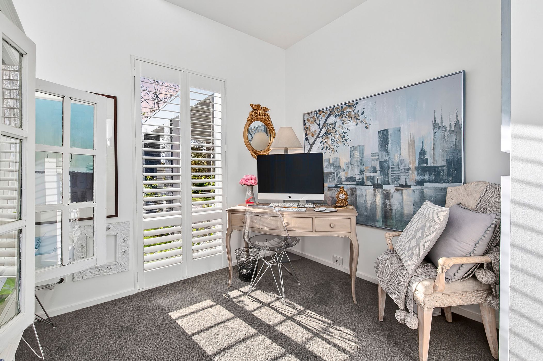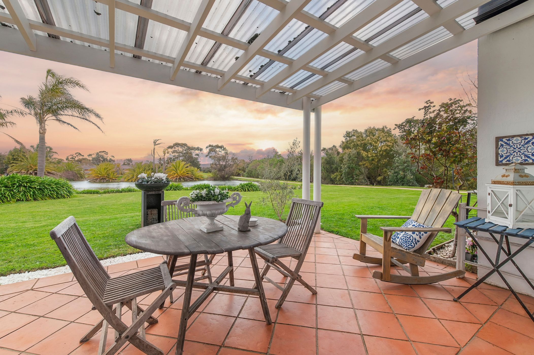 Designed in timeless Hamptons style, the interiors feature cathedral ceilings, two spacious living areas, a home office/study, two elegant bathrooms, and a Butler’s pantry/laundry with plentiful storage behind sliding doors. The generous kitchen is fitted with stone benchtops, a gas cooktop, loads of cupboards and deep pot drawers, plus calming lake views through its oversized windows.