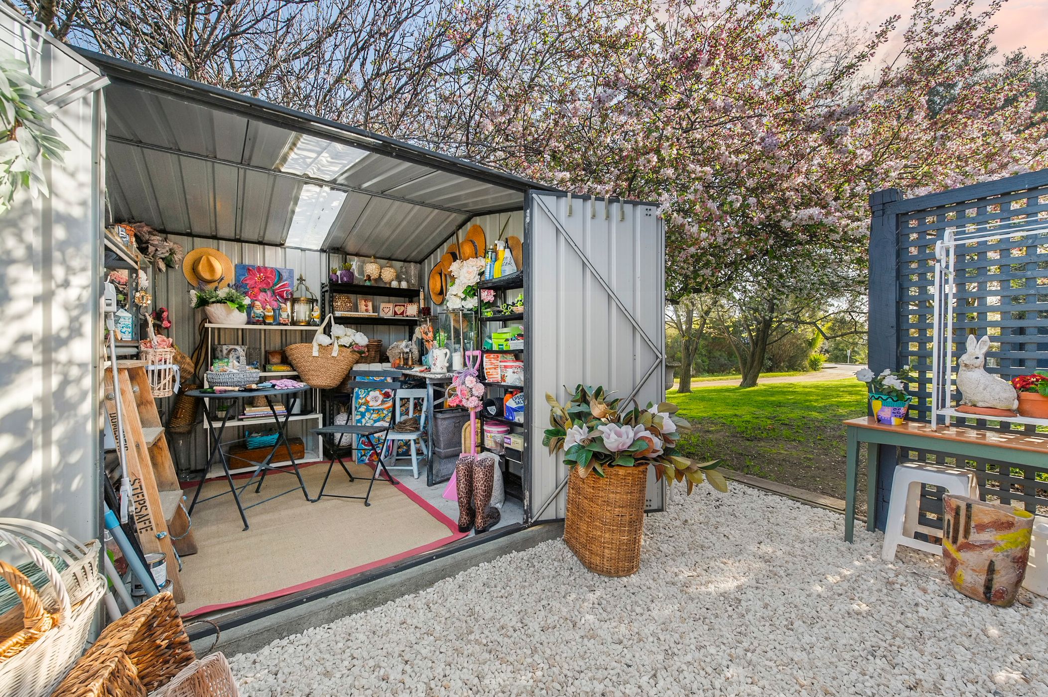 Outside, the landscape is beautifully established with expansive lawns, mature trees, cutting beds, and a dedicated garden room with an adjoining potting bench, perfect for the gardening enthusiast.