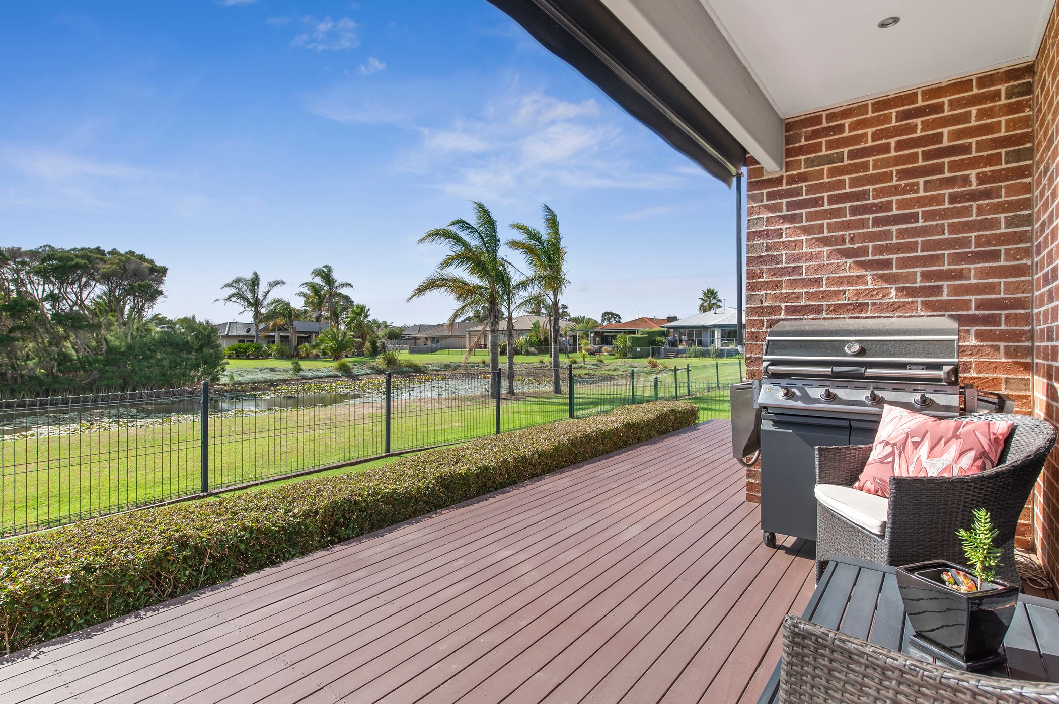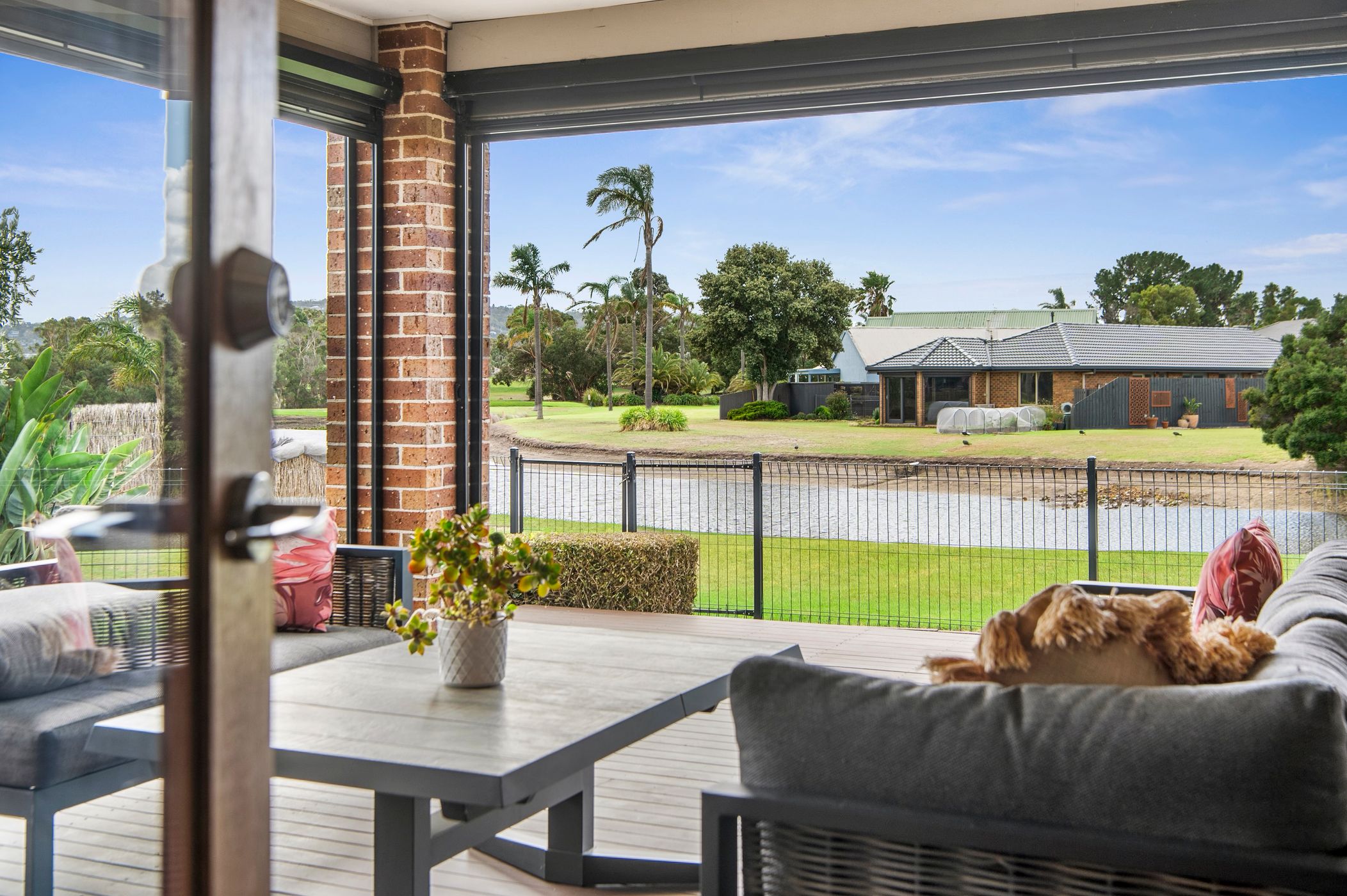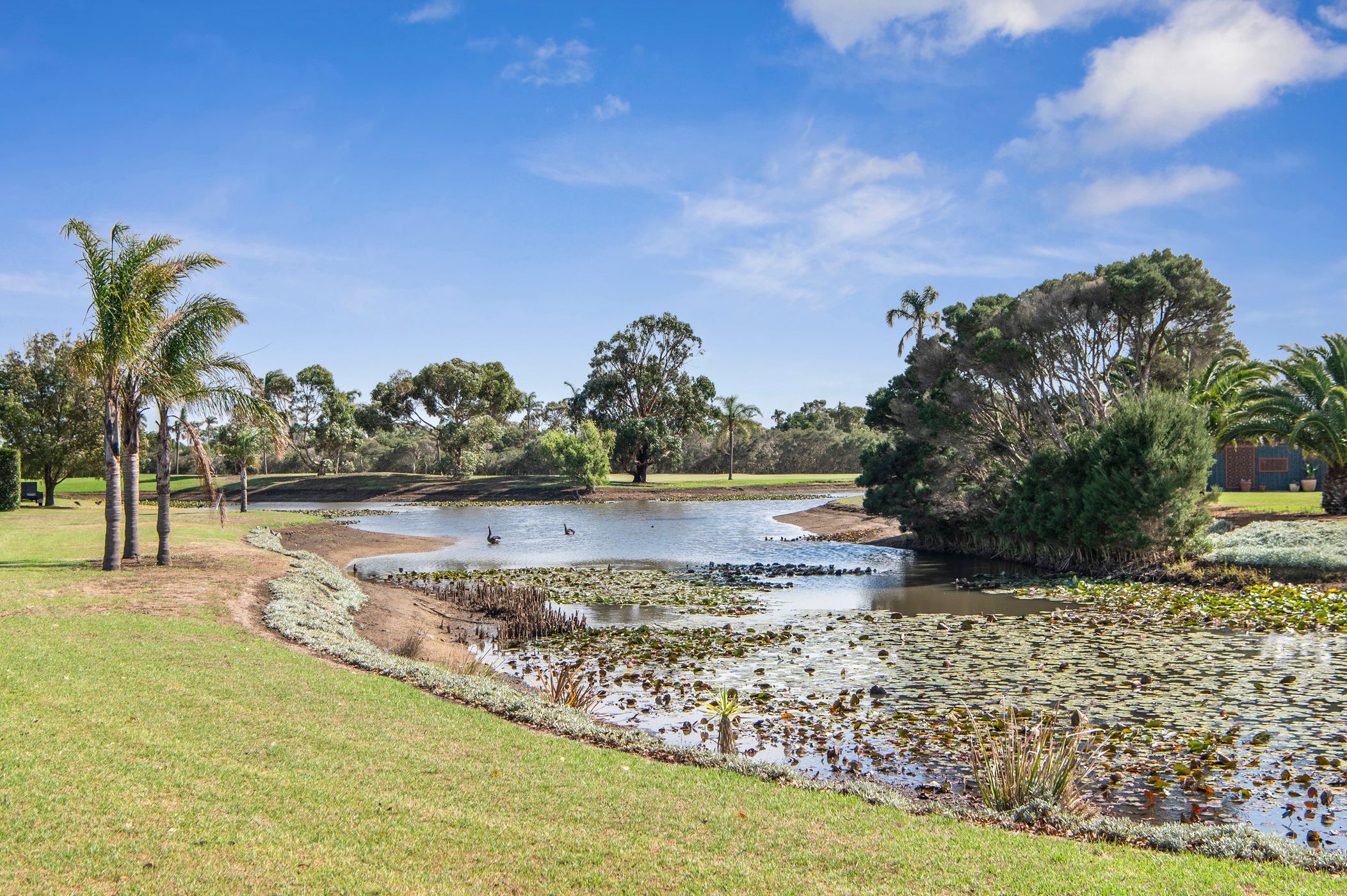 Outdoors, the lifestyle on offer is hard to beat. With direct rear gate access to the golf course, you can quite literally drive your golf cart from the oversized garage straight onto the fairway. Additional parking for a caravan or boat adds further practicality, while the north-east facing garden ensures beautiful natural light throughout the day.