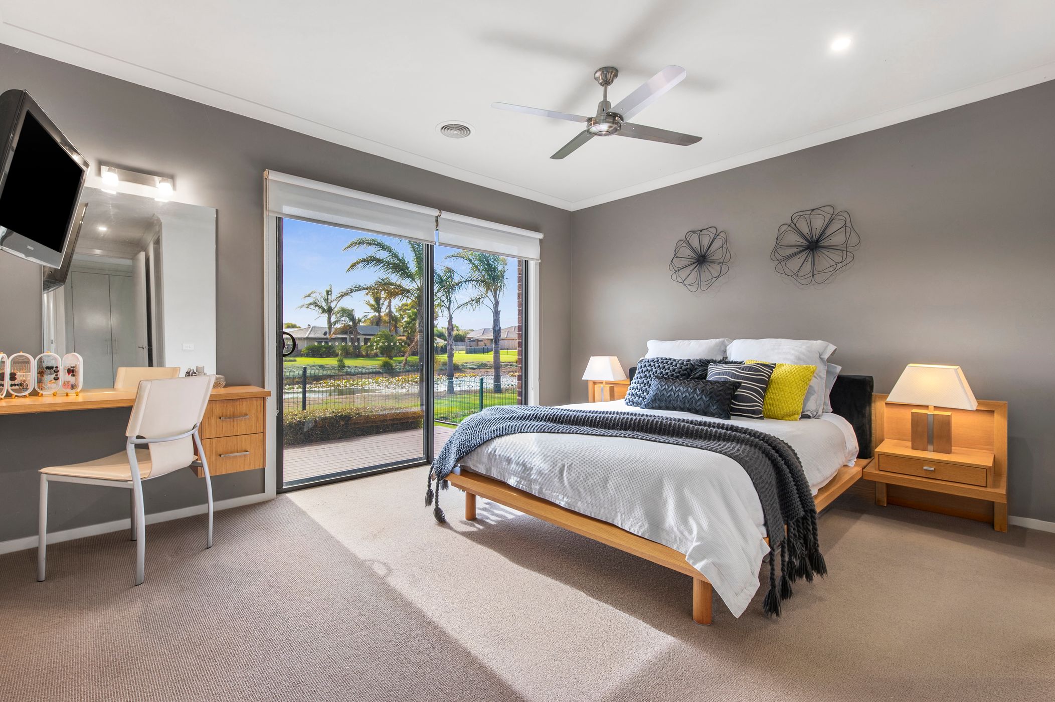 Accommodation is equally impressive, with four well-proportioned bedrooms: the master is positioned at the rear of the home, while three additional bedrooms are located at the front, complete with their own central lounge area and serviced by a spacious main bathroom and separate powder room—providing flexibility for families, guests or multi-generational living. The master suite is a true retreat, complete with both walk-in and built-in robes, a spacious ensuite with separate toilet, and direct access to the deck where you can wake to tranquil water views.