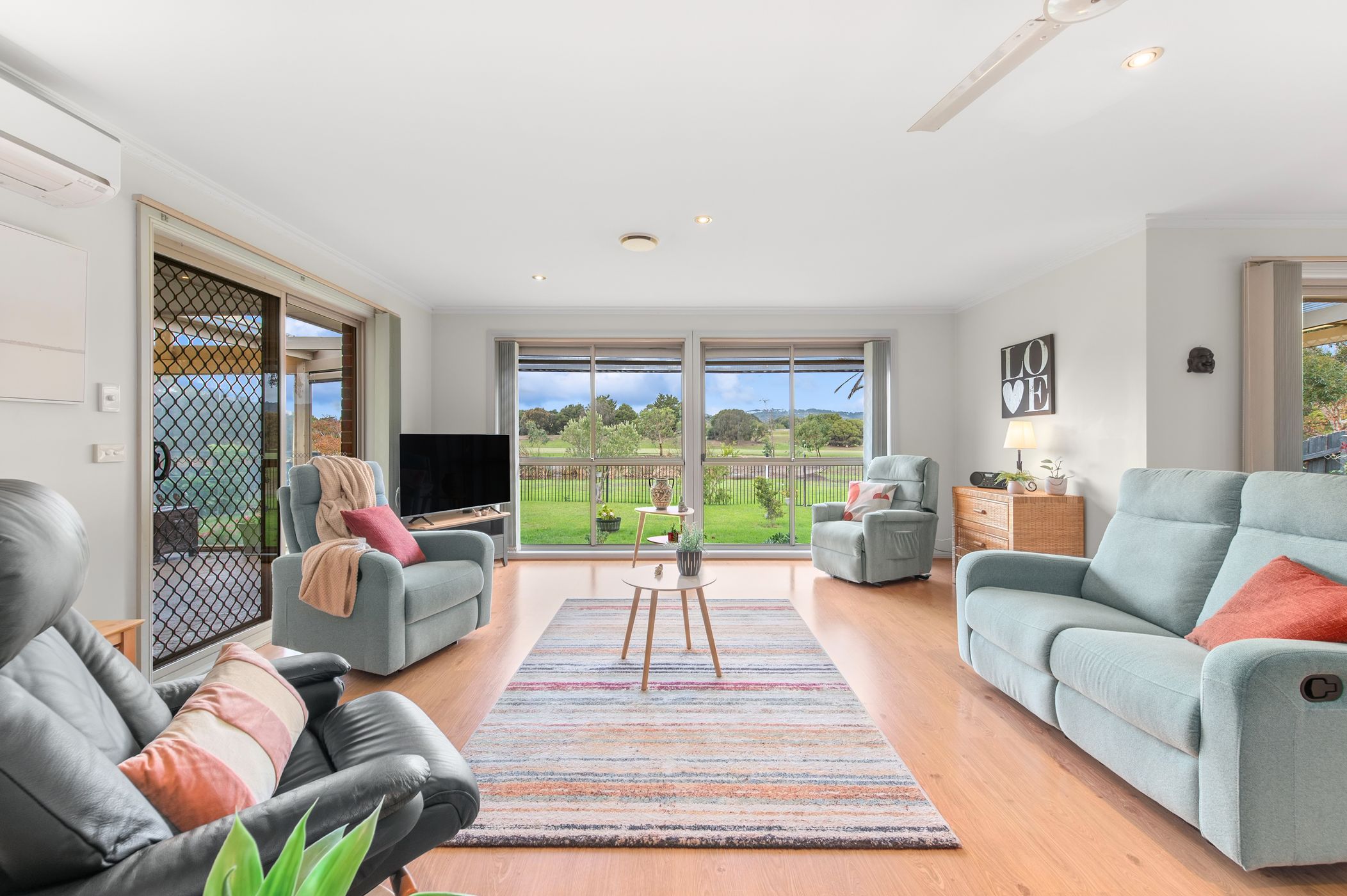 Sliding doors extend the living space outdoors to a covered alfresco, complete with PVC café blinds—allowing for all-season entertaining while taking in the tranquil golf course backdrop. The generous backyard further enhances the lifestyle appeal, offering space for children, pets, or simply enjoying the peaceful surrounds.